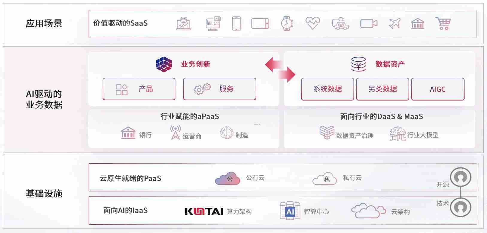 数字时代,,围绕企业数字化转型的关键要素,,尊龙数码开创性的提出数云融合战略和技术体系框架,,,,着力在云原生、、数字原生、、、AI原生和信创产业上架构产品和服务能力,,,为处在不同数字化转型阶段的快消零售、、、汽车、、金融、、、、医疗、、、、政企、、、教育、、、、运营商等行业客户提供泛在的敏捷IT能力和融合的数据驱动能力,,,,构建跨界融合创新的数字业务场景和新业务模式,,,助力企业级客户建立面向未来的核心能力和竞争优势,,全面推动社会的数字化、、、智能化转型升级。。